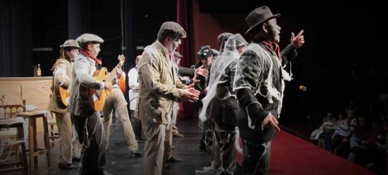 Bronceado favorecedor también para unos jóvenes que sudaron su primer disfraz en el Jardinito, si bien algunos de sus componentes ya se arrimaron hace más de diez años al 3x4 carnavalero. “Los olvidados”, comparsa egabrense que viniendo igualmente de Cuba, llegaban con premeditada discreción en su tipo y formas. Gustaron. Pasodoble para quien fuera estrella del Carnaval en 1999 Manolo Piedra, ‘El Zeta’ por todos los valores que ha representado y defendido. El segundo dedicado a nuestra Ciudad en defensa del patriotismo egabrense. Cuplés para las obras y para alguna anécdota de la comparsa. Popurrí en defensa de la libertad y los valores, con una visión de nuestras calles y plazas como sólo sabe verlas un exiliado. Blanco en la vestimenta, (camisa pantalón y mascota) aplicaciones en fieltro de palmeras y banderas de Cuba. Pañuelo de raso en color al cuello, bigote de hormiga y ambientación de tasca en el escenario.
