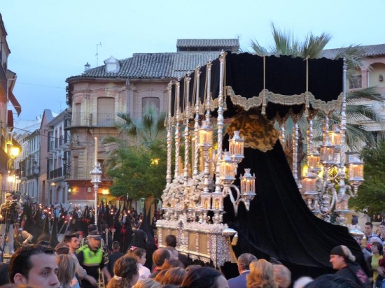 La Agrupación de la Virgen de las Angustias de nuestra ciudad, acompañaba con sus sones a la imagen del Señor que cuenta con más devoción en nuestra Ciudad y al que seguían numerosas personas alumbrando tras el paso. Cuando llegaba al Monasterio de las Agustinas Recoletas, la imagen se giraba hacia las ventanas de la calle Priego, para que las religiosas pudieran ver al Señor. Y mientras daba la vuelta a la Plaza de San Agustín para enfilar la calle Alcalá Galiano, la cofradía lo hizo en silencio, como señal de luto por el reciente fallecimiento de Madre Sacramento. Un silencio que estremecía y que llenaba de emoción el paso del Señor, que parecía avanzar andando abrazado a la Cruz.
