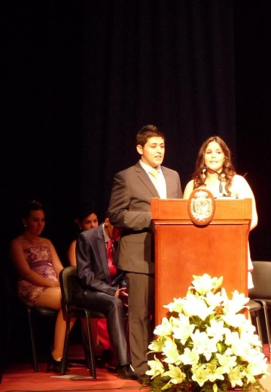 Luego vinieron las intervenciones de los representantes de los distintos cursos que se graduaban. María Hernández e Ismael Alguacil, lo hacían en nombre del Bachillerato de Ciencias y Tecnología; Marta Calvo y Miguel Angel Mesa, en rerpresentación del Bachillerato de Humanidades y Ciencias Sociales; Natividad Martínez y Miguel Ropero del Bachillerato de Artes y finalmente Isabel Cabello e Isabel Poyato en nombre de los alumnos y alumnas del Ciclo Formativo de Atención Sociosanitaria.