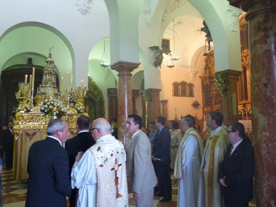 A eso de las once de la noche, con las calles iluminadas con luz artificial, la procesión terminaba su recorrido. Una vez en el templo, se procedió a la bendición y reserva en el Sagrario, donde se guarda el Santísimo Sacramento durante todo el año, tras haber recorrido en la custodia las calles de la Ciudad en esta solemnidad del Corpus Christi de 2011.