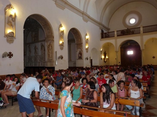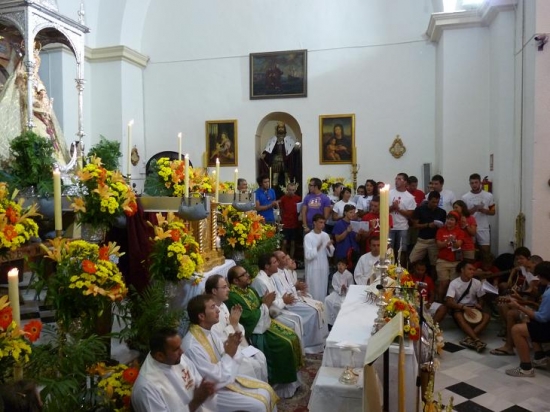 Ante la imagen de Ntra. Sra. de la Sierra y en su Santuario, una misa en italiano, concelebrada por los sacerdotes italianos de la diócesis de Piacenza y los egabrenses Zacarías Romero y Rafael Castro, servía para despedir a los jóvenes acogidos en Cabra desde el pasado jueves. Junto a los jóvenes de Cabra, participarán en los actos que tienen lugar en Córdoba para salir hacia Madrid en la mañana del 15 de agosto en la Jornada Mundial de la Juventud.