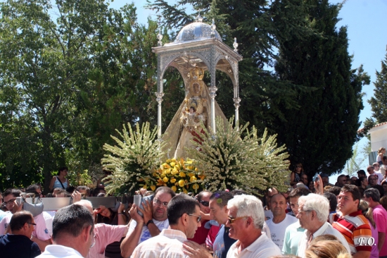 La procesión avanzaba rumbo al patio del aljibe y los cánticos de los devotos acompañaban al cortejo. Ya en los miradores se procedió al rezo de la Salve Popular que fue entonada por Antonio Roldán y Alfonso Vergillos. A su término la Señora regresaba al interior del templo esperando la llegada del próximo 4 de septiembre cuando el pueblo vuelva a reencontrarse con su amada Patrona en la tradicional Bajá que supone el inicio de las fiestas mayores de la ciudad.