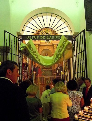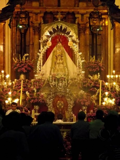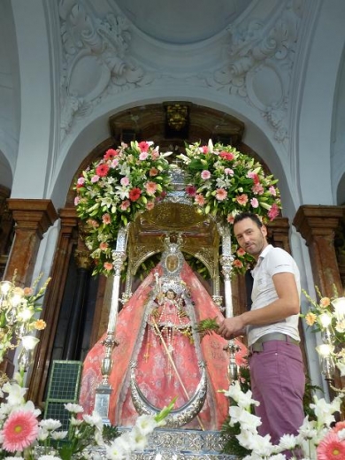 Mientras su vestidor, José Luis Osuna y las camareras de la Archicofradía terminaban de poner las flores y las esquinas de nardos en las andas de viaje, la parroquia se preparaba para la última tarde de visitas a la Virgen en este año 2011.