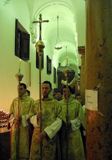 Ya en la tarde del viernes la Parroquia estuvo llena a todas horas. Tras la misa ofrecida por los Costaleros de la Virgen de la Sierra - Hermandad de San Rodrigo Mártir, que fue cantada por el Coro de Cámara de la Fundación Aguilar y Eslava, tuvo lugar la procesión claustral con el Santísimo bajo palio que pone fin a las celebraciones eucarísticas que han tenido lugar a diario ante la antiquísima imagen de Ntra. Sra. de la Sierra.