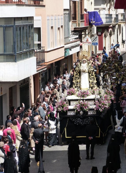Desde la parroquia de la Asunción, finalmente las cofradías de Ntra. Sra. del Rocío de Pasión, la de Ntro. Padre Jesús Nazareno y la de Ntra. Sra. del Mayor Dolor, iniciaban su salida procesional. El tiempo ha permitido una buena mañana de Viernes Santo y las tres cofradías han podido completar sus horarios e itinerarios con bastante gente presenciándolos. La Virgen del Rocío, que iba primera en el cortejo, lo hizo con paso más rápido, mientras que el Nazareno y la Virgen del Mayor Dolor siguieron más pausadamente hasta completar el itinerario y volver a la parroquia de la Asunción, sede de las tres cofradías de la mañana del Viernes Santo.