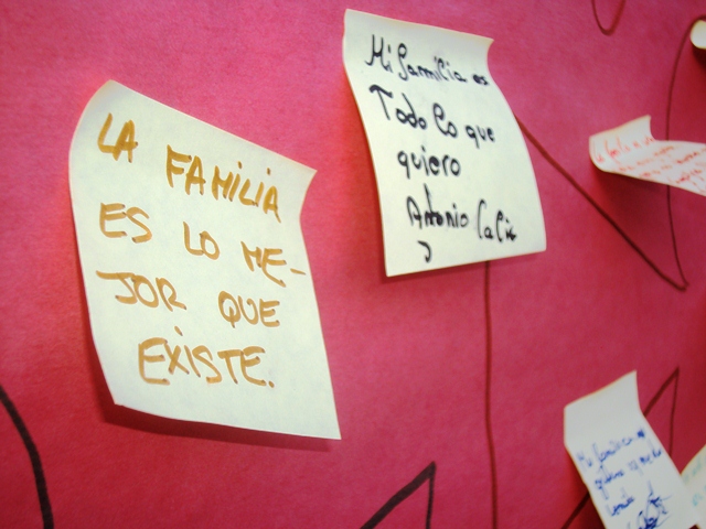 A la lectura del manifiesto hay que añadir la colocación de un mural que, desde las 18 horas ha estado presente en la fachada del Ayuntamiento y donde los viandantes han ido expresando lo que para ellos significa la familia.