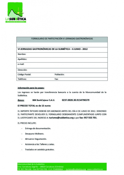 VI JORNADAS GASTRONÓMICAS DE LA SUBBÉTICA