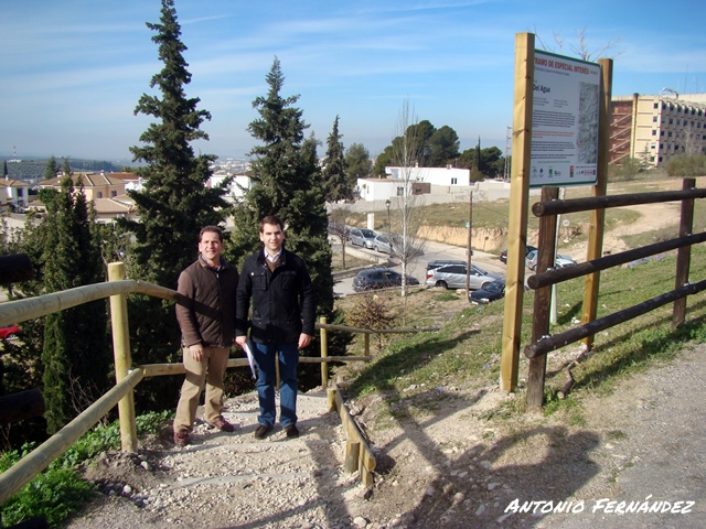 El Alcalde de Cabra, Fernando Priego, acompañado por el Delegado de Turismo y Deporte, Francisco Casas han comprobado esta mañana el aspecto que presenta la nueva señalización existente en la Vía Verde de la subbética a su paso por Cabra. Se trata de señalizaciones que, como ha indicado Fernando Priego, indican al usuario de la Vía Verde la proximidad de un paraje tan singular como es el de la Fuente del Río o el inicio del sendero por la Sierra Subbética hasta el conocido paraje de "Fuente de Jarcas".