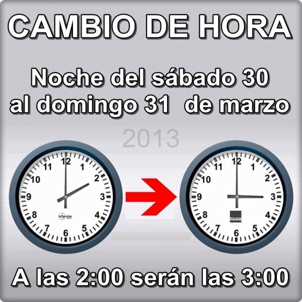 El cambio de hora que comienza este domingo 31 de marzo finalizará la madrugada del 27 de octubre del 2013 que es cuando da comienzo el horario de invierno.