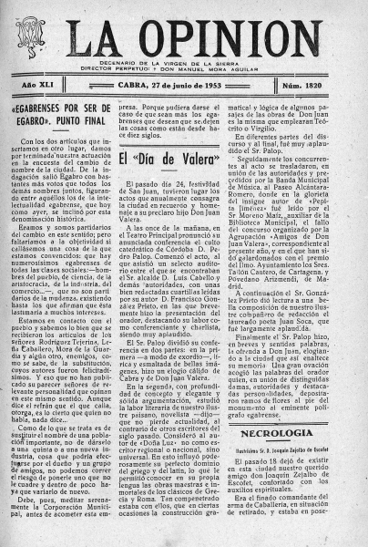 En las imágenes que ilustran esta noticia, incluimos la portada de La Opinión del 27 de junio de 1953 con la crónica del Día de Valera de hace cincuenta años, así como unos versos de Juan Soca publicados también en La Opinión hace medio siglo.