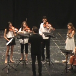 Y el grueso del concierto lo ocupó el PIANO solo, con apariciones en dúos, del violín, chelo y guitarra, incluido un GRUPO DE CÁMARA (3 violines y 3 chelos) que hicieron "Le petit negré" de Debussy. En las obras interpretadas en este concierto las había más conocidas así como menos, al igual que compositores como Brahms, Beethoven, Haendel, Bach, Mozart, Chopin, Albéniz hasta Burgmüller, Dorontes. Mitchel, Tiersen...menos oídos, e intérpretes más "hechos" o menos según el curso que están estudiando, aunque las obras eran las apropiadas al grado de sus conocimientos.