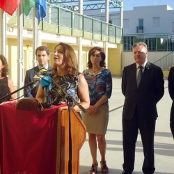 Tras las intervenciones pertinentes, se descubría una placa conmemorativa del evento en la pista deportiva del edificio que desde hace unos meses alberga la Biblioteca de la Barriada, el Taller Ocupacional de FAISEM, la sede de la Asociación de Vecinos de la Barriada o la Sede de la Delegación de Cáritas de la Parroquia "San Francisco y San Rodrigo" del Barrio.