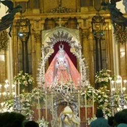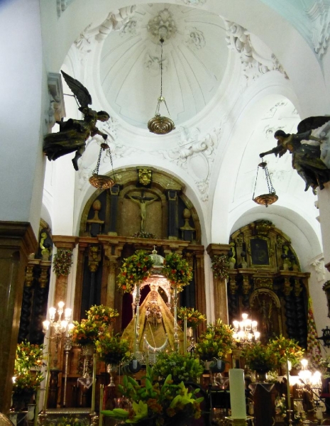 En la noche del viernes, tras la celebración que ofrecía la Hermandad de San Rodrigo - costaleros de la Virgen de la Sierra -, tenía lugar la solemne procesión claustral con el Santísimo que culmina los cultos ofrecidos durante la estancia de la Virgen en la Parroquia.