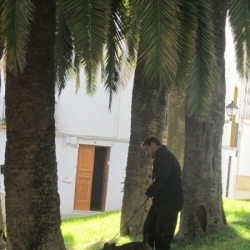 Los asistentes a las jornadas se trasladaron al palmeral de la plaza Vieja para presenciar unas demostraciones prácticas sobre algunas técnicas empleadas en distintos municipios de la costa malagueña, donde la plaga ha causado verdaderos estragos y la tasa de mortalidad de las palmeras asciende a miles. Entre una de las técnicas más novedosas, se encuentra el uso de perros adiestrados que detectan rápidamente la presencia de picudo hasta tres metros de altura, una técnica muy útil para casos en los que las larvas se encuentran en la zona de la base del tronco y cuando la plaga ha entrado a nivel de las raíces, como así ha sucedido en algunos casos concretos de palmeras datileras en la costa, aunque no es lo más frecuente.
