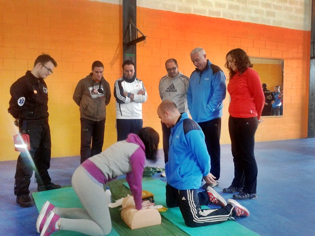 El curso contó con un total de algo más de cuatro horas que se distribuyeron equitativamente en teoría y práctica. La primera parte sirvió para acentuar y afianzar los conceptos necesarios para detectar rápidamente una parada cardiorespiratoria, así como para poner en marcha el protocolo de actuación. Igualmente se puso especial interés en conocer las incidencias ocurridas de especial gravedad en el transcurso del último año dentro de las instalaciones deportivas y su actuación, con el fin de ser evaluadas por el personal sanitario asistente y su corrección o mejora para situaciones futuras.