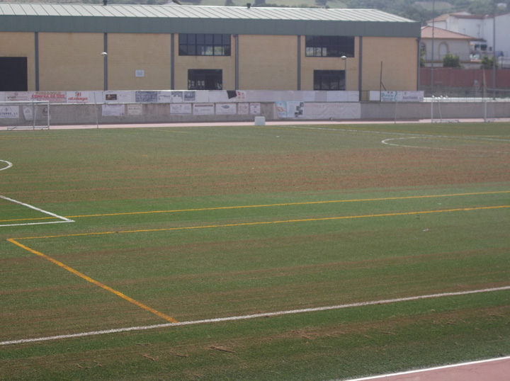Durante los días 7 y 8 de Mayo, el campo de césped de la Ciudad Deportiva "Maria Dolores Jiménez" de Cabra está recibiendo el tratamiento de mantenimiento correspondiente tras su instalación hace ahora algo más de tres años. Durante la mañana del día 7 se procedió a la recepción del material, así como de los profesionales de la empresa cordobesa SOLUCONT S. L. encargada de realizar dicho tratamiento y cuyo coste se eleva a los 6.500 ?.