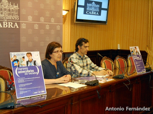 La Delegada de Educación del Ayuntamiento de Cabra, Socorro Moral (PA) ha estado acompañada del responsable de uno de los Cursos, Pablo Luque para dar a conocer los dos temas sobre los que en el próximo mes de julio se desarrollarán los Cursos Universitarios de Verano de la Universidad de Córdoba en nuestra Ciudad.