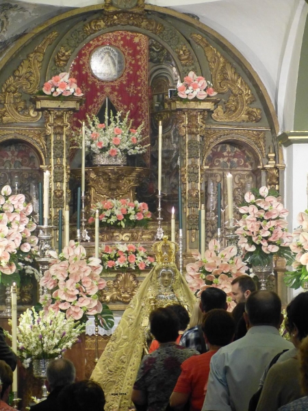 Tras un sábado de septiembre cargado de devoción mariana en torno a la imagen de Nuestra Señora de la Sierra, el Barrio del Cerro acoge hasta el 1 de octubre la estancia de nuestra Patrona en los muros de la vieja Iglesia de San Juan Bautista. Durante toda la jornada de este domingo 28 de septiembre, la Virgen de la Sierra recibe el testimonio de todo su pueblo y de los miles de devotos que, a lo largo del día se acercarán hasta sus plantas. El besamanos se iniciaba a las 8 de la mañana y estará hasta las 11 de la noche.