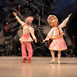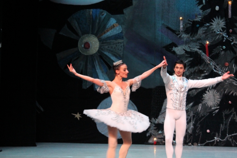 Siguiendo con la representación del día 25 de diciembre, sus responsables fueron Lurie Grigorovici, coreografía, Semión Virsalazde, diseñador y la Dirección Artística de Tamara Podareva, quienes con un escenario muy atractivo representando un gran árbol de Navidad, sirvió para desarrollar la historia de Marie con la bella música de Tchaikovsky (no hubo orquesta sino grabación) en 2 actos (130 minutos con descanso), con un movimiento de bailarines que no decayó en ningún momento y con una exhibición de los cuadros que componen este ballet, muy bien logrados.