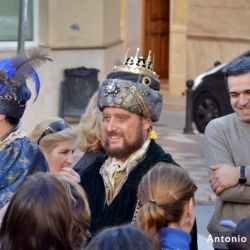 A su llegada a la Plaza de España y con la ya tradicional narración de la periodista egabrense Maria Eugenia Vilchez, sus Majestades ofrecieron Oro, Incienso y Mirra al Niño Jesús.