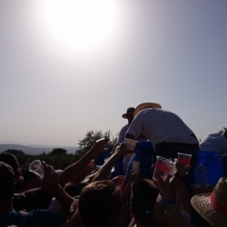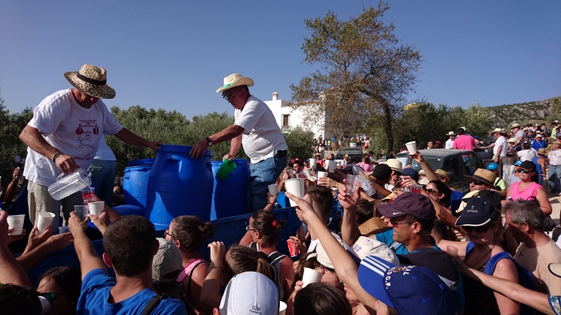 Según comentaban algunos de los más veteranos costaleros, alguno de ellos encargado de repartir el agua desde los vehículos preparados por la hermandad de san Rodrigo Martir, no se recuerda una jornada en la que se haya acabado el agua que distribuyen a cuántas personas participan en la bajada. Y así, prácticamente desde la Viñuela los depósitos iban mermando hasta agotarse, salvo alguna reserva que se dejó y terminó de distribuirse en la Casilla de la Salve.