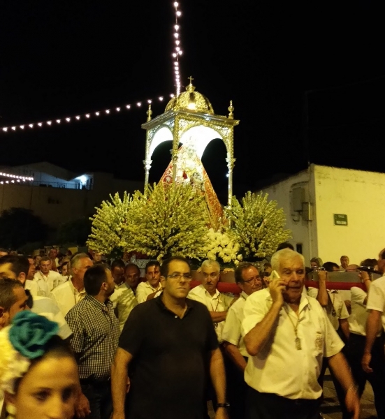 Había mucha gente anoche en Cabra, se notaba el ambiente festivo y la gran devoción a la Virgen de la Sierra que la acompañaron en todo el camino de bajada y luego en su recorrido por la ciudad hasta llegar a la parroquia. Hubo cierto retraso en la entrada oficial por los Arcos de Baena, que hizo que en los últimos tramos, la Virgen tuviera que llevar un paso muy rápido. Y también se hizo lento el recorrido de las carrozas que esperaban en la Avda. de Andalucía desde las 9 de noche.