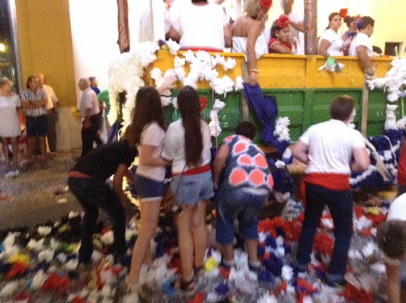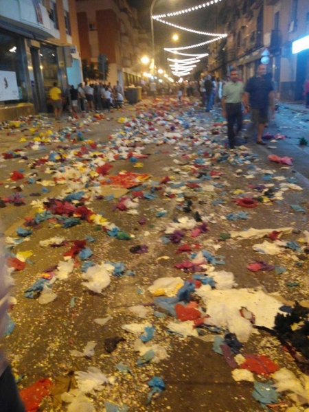 Aún así, la batalla de flores de la noche del 5 de septiembre, a pesar de contar con muchas menos carrozas que en años anteriores, se hizo lenta y volvió a ofrecer escenas poco deseadas. Numerosas carrozas fueron prácticamente destrozadas durante el recorrido cerrado, llenando de cartones, maderas, flores de papel y otros elementos, las calles por las que transcurrió. Los servicios municipales tuvieron que realizar un trabajo intenso que se desarrolló inmediatamente después de que acabara la batalla de flores, para devolver la limpieza al recorrido. En las redes sociales podemos comprobar la indignación de muchas personas por este espectáculo que, como puede leerse en algunos comentarios, es poco representativo de una batalla de flores inmersa en una fiesta declarada de interés turístico nacional.
