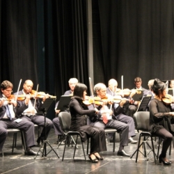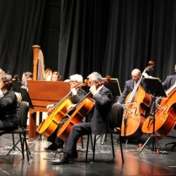 A las 9 de la noche, en el teatro egabrense que rozó el lleno, comenzó el Concierto y tras la afinación pertinente de la orquesta por la concertino Isel Rodríguez, salió a ocupar el podio el director de la formación, que fue recibido con grandes aplausos. Lorenzo Ramos era la primera vez que pisaba el escenario de "El Jardinito", no así la orquesta que ya lo he hecho en distintas ocasiones y se dirigió al público agradeciendo la asistencia e indicó que la primera obra que se iba a interpretar, la "Suite" "Don Quijote" de Georg Philip Telemann (1681-1767), el compositor más prolífico de la historia de la música, constaba de 7 partes, que relató para conocimiento del público, al no figurar en los programas de mano. La orquesta, reducida a una formación camerística de cuerda, hizo una deliciosa exposición de la bella partitura barroca, que sonó exquisita en las manos de Lorenzo Ramos. El público aplaudió con fervor esta primera actuación de la orquesta, que se desarrolló dentro de un silencio total, como todo el concierto.