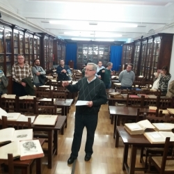 Esta ruta temática literaria tuvo lugar el pasado miércoles 8 de marzo siendo el punto de partida fue la Fundación-Instituto Aguilar y Eslava, donde saludaron los organizadores del evento y el secretario del centro, Julián Castro; seguidamente, Manuel Guerrero, profesor del centro y director de actividades de la Cátedra Juan Valera, realizó una aproximación a la historia del centro educativo que se complementó con la visita a la biblioteca del Instituto-Fundación en la que Antonio Suárez había preparado varios ejemplares del Fondo histórico (volúmenes anteriores al siglo XIX) que los visitantes pudieron ver y tocar.