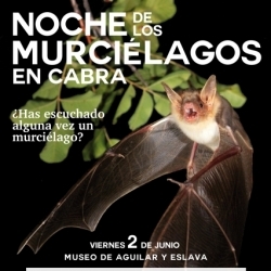 Organizada por la delegación municipal de Medio Ambiente, con la colaboración del Grupo GEAL y el Museo Aguilar y Eslava, la Noche de los murciélagos en Cabra tendrá lugar a partir de las 19:30h del próximo viernes 2 de junio en el Aula Juan Carandell del Museo Aguilar y Eslava y terminará con una salida nocturna.