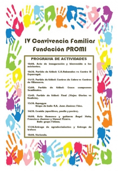 El próximo sábado, día 17 de junio , se celebrará la IV Convivencia Familiar de Fundación Promi con trabajadores, usuarios y sus familiares, que un año más tendrá lugar en R.A. "Juan Jiménez Fernández" den Av. Fuente las Piedras en Cabra.