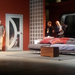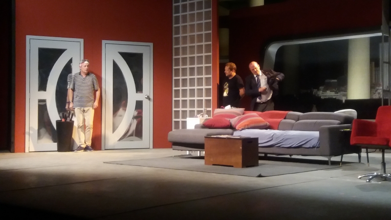 Esta historia de enredos ha sido adaptada al español de la mano de intérpretes tan notables como Josema Yuste, Sergio Fernández "El Monaguillo" y Santiago Urralde. Esta obra prometía risas aseguradas al cien por cien y así fue, la actuación cumplió las expectativas puestas en ella y consiguieron arrancar constantemente las carcajadas de un público egabrense entregado a esta peculiar comedia.