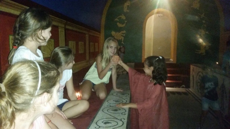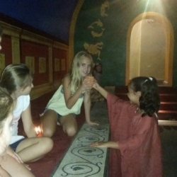 Por último, y correspondiendo al período romano, se ha indagado en las religiones isíaca y mitraica: Isis les ha llevado a conocer su historia y sus atributos, entre ellos un instrumento musical llamado "Sistro" que han podido tocar de camino al templo mitraico, donde ha terminado la sesión entre un banquete romano reconfortante, cánticos y acercamiento a la astronomía.