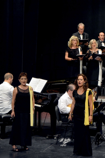 Las obras dedicadas a Nuestra Patrona fueron el resto del programa y en versión concierto son siempre muy atractivas oírlas. Así escuchamos a continuación 3 piezas que compuso Pepe Rodríguez López, las dos primeras a la Virgen de la Sierra, cuales fueron el "Himno a la bandera" y la canción "La Casita Blanca" cuyos solos estuvieron a cargo de las sopranos Carmen Agudo y Trini Valverde, con sus timbres particulares y las bulerías egabrenses "Mírame cara a cara" en la que otra vez ocupó el podio de la dirección Manuel Aguilar, diciéndolas el tenor Alfredo Martínez, con su voz característica muy apropiada a esta obra.