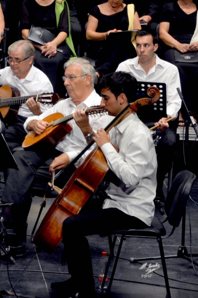 Como final de la primera parte, se hizo un pequeño homenaje a Antonio Villa Álvarez de Sotomayor, lucentino recientemente fallecido, pianista, director y compositor (autor de la peculiar Misa del Campo Andaluz, que todos los años en mayo se interpreta ante la Virgen de Araceli en la parroquia matriz de San Mateo de Lucena, en las Fiestas Aracelitanas), persona que estuvo muy ligada al Centro Filarmónico Egabrense, del que llegó a ser director-adjunto, con el director José Rodríguez López, al que le unía una gran amistad. Las palabras del presidente Manuel Molina, hicieron una sucinta biografía del músico de Lucena, fundador de la Coral Lucentina y cómo llegó con ésta a alcanzar el 1er. Premio en el Concurso Internacional de Habaneras de Torrevieja (Alicante) con la habanera que compuso, "Barquito de sal", de la que oiremos en una versión orquestal, arreglo de José Manuel Molina, esta bellísima pieza. La obra fue dicha magistralmente por la orquesta, bajo la siempre segura batuta de Manuel Aguilar y en la que escuchamos el chelo solista Antonio Peña, que "cantó" la melodía con un hacer delicioso y magnífico. Fue muy aplaudida.