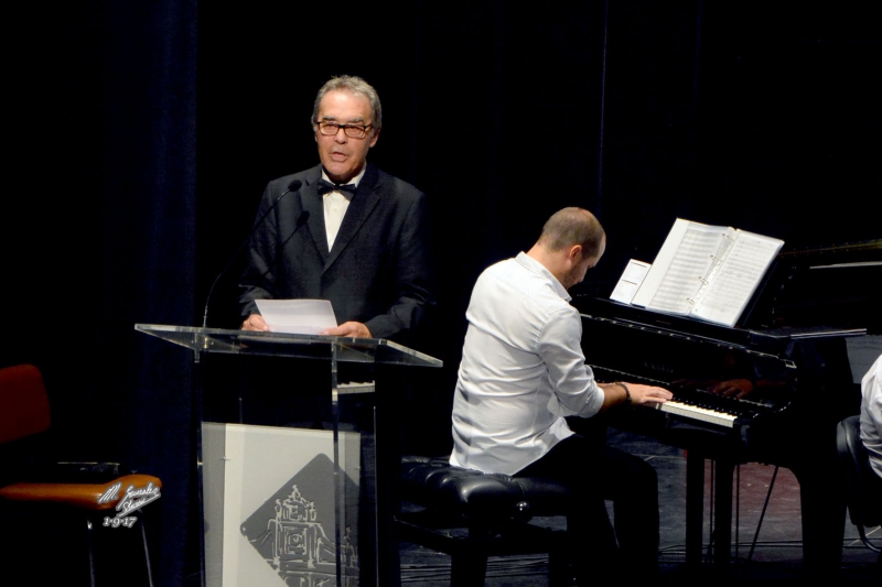 El presidente del CFE Manuel Molina Jiménez abrió la noche con unas palabras de agradecimiento a todos los presentes, incluidos las autoridades, rey, reina y damas de las Fiestas y comentó brevemente el programa que íbamos a interpretar.