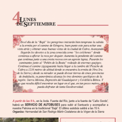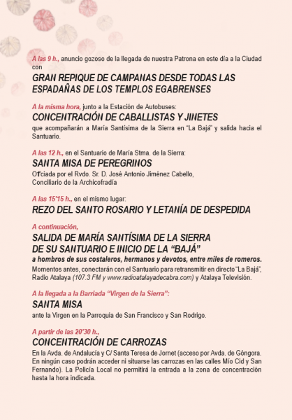 Les dejamos en las imágenes el programa para que tengan cumplida cuenta de los actos que van a tener lugar este 4 de septiembre. Y si pueden, asistan a la presentación del libro del pregón bajo el título La luz de mis días, el próximo 5 en el Centro Filarmónico Egabrense cuya venta será destinada al comedor social de Cáritas.