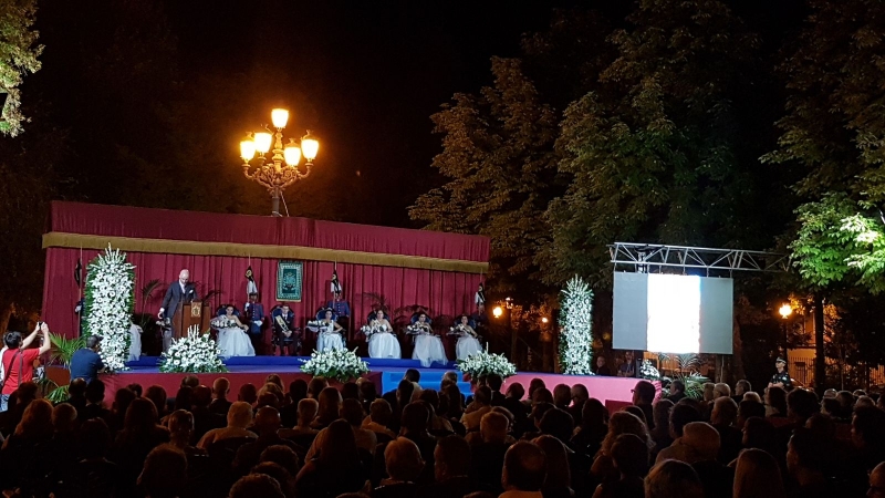 La comitiva cívica escoltada por los lanceros de la banda Coronación de Campillos, seguía los sones festivos de nuestra centenaria banda sinfónica que recorrió varias calles hasta llegar al real de la feria en el parque de La Tejera donde ser procedió a la inauguración del alumbrado, con disparo de cohetes y a la apertura de las casetas. En el patio de naranjos del centro ADIE tuvo lugar el homenaje al pregonero y corte de honor.
