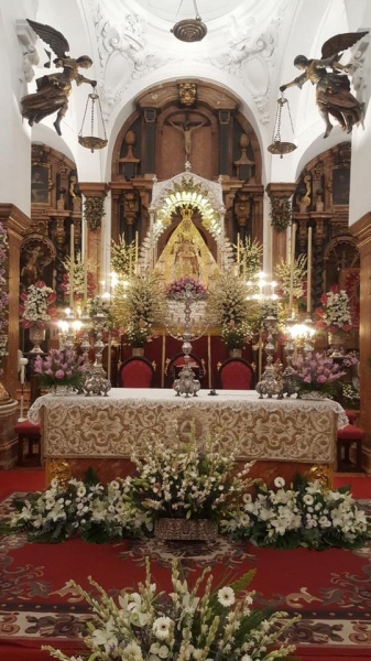Luego la Misa de la Bandera volvió a concentrar a numerosas personas que esperaban el término de la función para llenar nuevamente el templo de la antigua Iglesia Mayor Parroquial de Cabra. La Virgen luce en esta jornada el manto y saya de la coronación y ya está preparada en sus andas de plata para recorrer entre multitudes devotas las calles de la ciudad de la que es Patrona y Alcaldesa perpetua y honoraria.