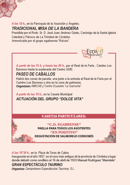 Y así vamos llegando al final de la Feria 2017 que luego tendrá continuidad con los actos religiosos y la novena a Nuestra Señora María Santísima de la Sierra. También el mismo día 9 comienzan exposiciones y se abre oficialmente la programación del 22º Certamen de Creación Audiovisual de Cabra.