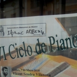 El primero fue el 7 de mayo a cargo de Vicent Sendra Vilanova, de Pego (Alicante), alumno de Diego Cayuelas, que ya repetía en Cabra. Por motivos personales no pude asistir, pero ya escuché al intérprete el pasado año y fue un ejecutante superior. Este año, con más experiencia, según algunos asistentes, hizo con gran solvencia obras de Scarlatti, Liszt, Brahms y Albéniz.
