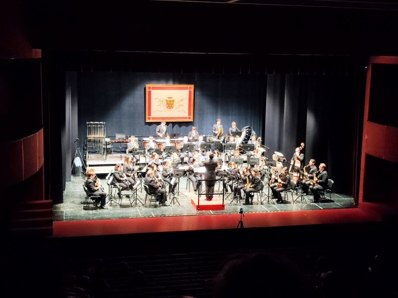 Se abrió el telón pasadas las 20:00 horas, y el primer golpe de batuta comenzó con Yakka, una de las obras más conocidas de J. R. Pascual-Vilaplana, compositor y director valenciano muy ligado al repertorio de banda sinfónica. Pasodoble estrenado en julio de 2007 en el Palau de la Música de Valencia, la banda mostró desde el primer compás un sonido firme, con fuerza y potencia, equilibrado y bien articulado. Destacó especialmente la intervención de Carmen Pavón con el saxo alto, cuya línea solista aportó brillo y elegancia al entramado de este pasodoble, subrayando la riqueza tímbrica de la obra. Yakka es una marcha mora concebida para las Fiestas de Moros y Cristianos de Yecla (Murcia). En estas fiestas, típicas y arraigadas en la zona levantina, es común encontrar marchas tanto para el bando cristiano como para el bando moro. En este caso, Yakka es el nombre que recibe una antigua fortaleza y poblado musulmán predecesor de la actual ciudad de Yecla, motivo por el cual esta obra sinfónica de inspiración morisca gira en torno a un lenguaje modal de tintes árabes.